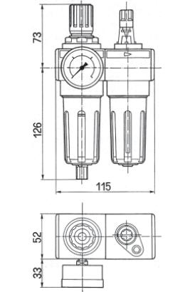 Inclui: Regulador de filtro; Lubrificador por névoa de óleo