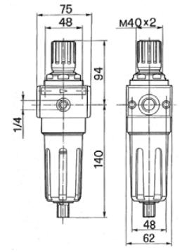Conenctores: 1/2; Pressão de entrada: 24 bar; Pressão de saída: 0-12 bar; Capacidade do copo: 100 cc; área de impureza: 60 cc; Grau de filtragem: 50 µm