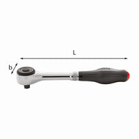 Modelo com 60 dentes e ângulo de ação de 6° para trabalhar em espaços restritos Sistema de reversão do botão Botão de liberação do soquete