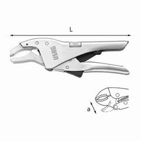 Mordentes forjados Dentes projetados para uma aderência perfeita mesmo em superfícies redondas Sistema de abertura patenteado integrado nas alças Ajuste do punho do rolo integrado na alça
