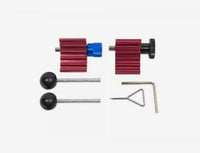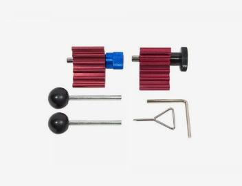 Inclui: Pino auxiliar bloqueio correia de transmissão; Ferramenta bloqueio da cambota; Ferramenta bloqueio da cambota; Pino tensor bloqueio da polia; Pinos bloqueio bomba injetora (x2).