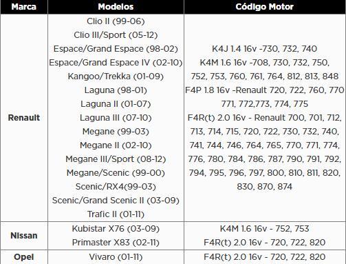 Adequado para substituição da correia distribuição em motores Renault 1.4, 1.6, 1.8, 2.0 e alguns veículos Nissan e Opel