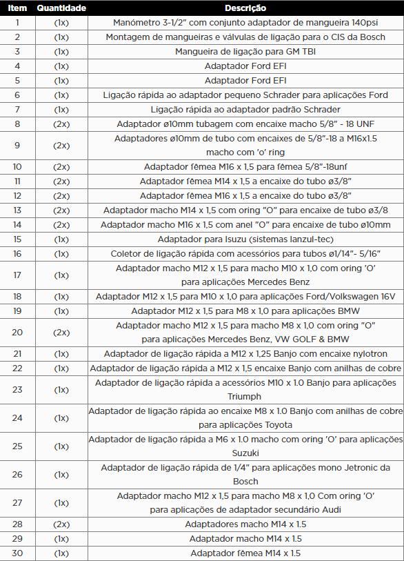 KROFTOOLS KIT TESTE INJECAO GASOLINA 6589