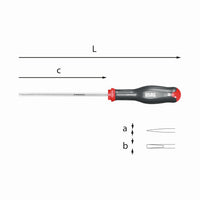 Ponta zincada para alta resistência ao desgaste e à corrosão Lâmina em aço cromo silício vanádio para excelente resistência à flexão Punho ergonômico de três materiais com revestimento macio, resistente a óleos e produtos químicos Código de cores no cabo para rápida identificação dos diferentes formas