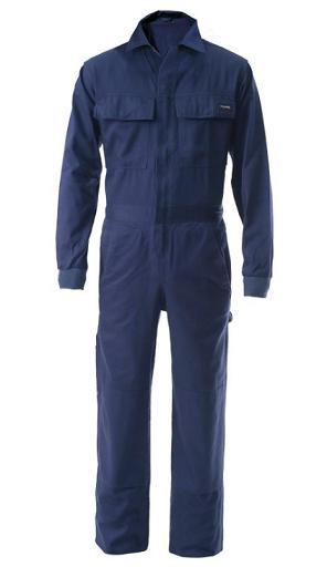 Macacão padrão, ideal para soldadura. Design de peça única, bolsos no peito com aba. Botões de pressão ocultos e porta-canetas. Punhos com fecho de pressão. Costuras triplas. Zíper de metal bidirecional oculto por fecho de pressão. Cós elástico nas costas, para um ajuste perfeito. Bolsos para joelheiras; Bolsos traseiros; Bolso lateral duplo na perna direita. E na esquerda, passador para martelo.