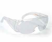 Óculos básicos com proteções laterais de policarbonato. Óculos transparentes de uma só peça. Resistente a impactos. Lente e armação de policarbonato. Proteção contra radiação óptica (filtro UV). Uso prolongado. Furos para uso com cordão.