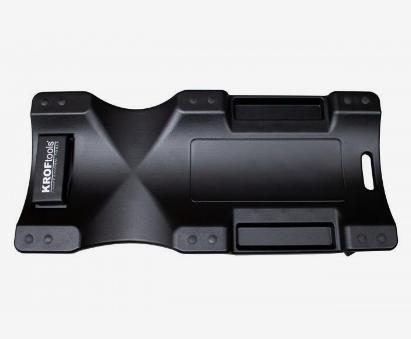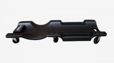 Capacidade máxima de 200 kg Perfil baixo 6 rodas giratórias Fácil de limpar Resistente a óleo e solventes Alça de transporte conveniente Apoio de cabeça acolchoado em espuma confortável Armazenamento de ferramentas integrado