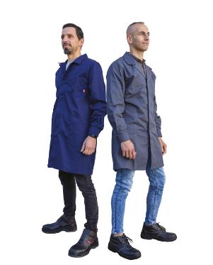 Bata de trabalho com 1 Bolso de caneta ou ferramenta peito lado esquerdo; 1 Bolso baixo na frente no lado direito e 1 no lado esquerdo; Punhos com ajuste em velcro; Cintura elástica para melhor ajuste; Aperto com botões; Botões com lapela de proteção; Reforços nas costuras de maior desgaste.