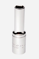 1/2" deep hex socket wrenches, sizes in mm Chromium vanadium alloy steel Bright chrome finish